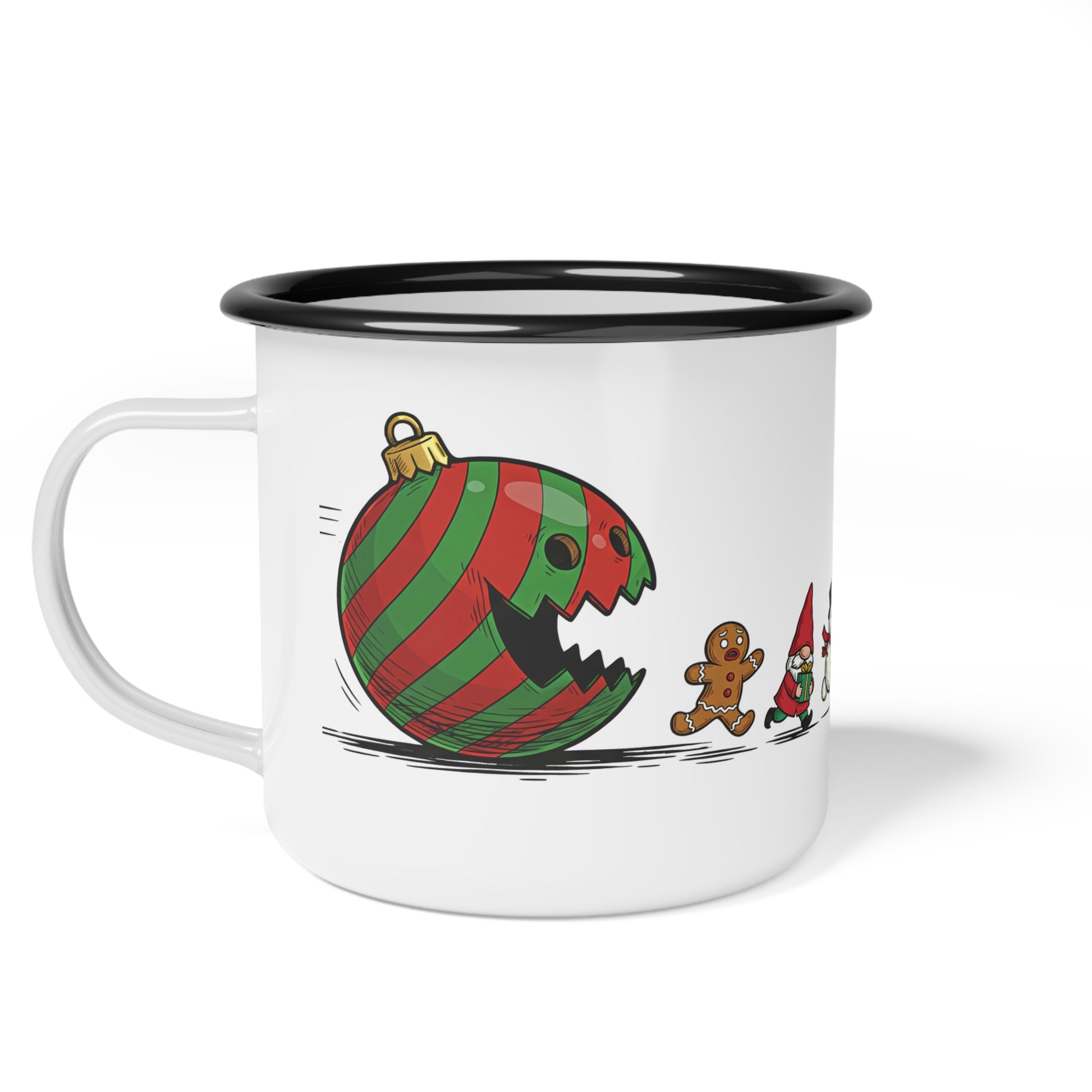 This Enamel Camp Cup features a funny Christmas ornament monster design with gingerbread, gnome, and snowman, creating a cozy and festive atmosphere. Perfect for anyone who loves camping and enjoys a touch of holiday spirit in their everyday life. Ideal for Christmas, camping trips, and outdoor enthusiasts.