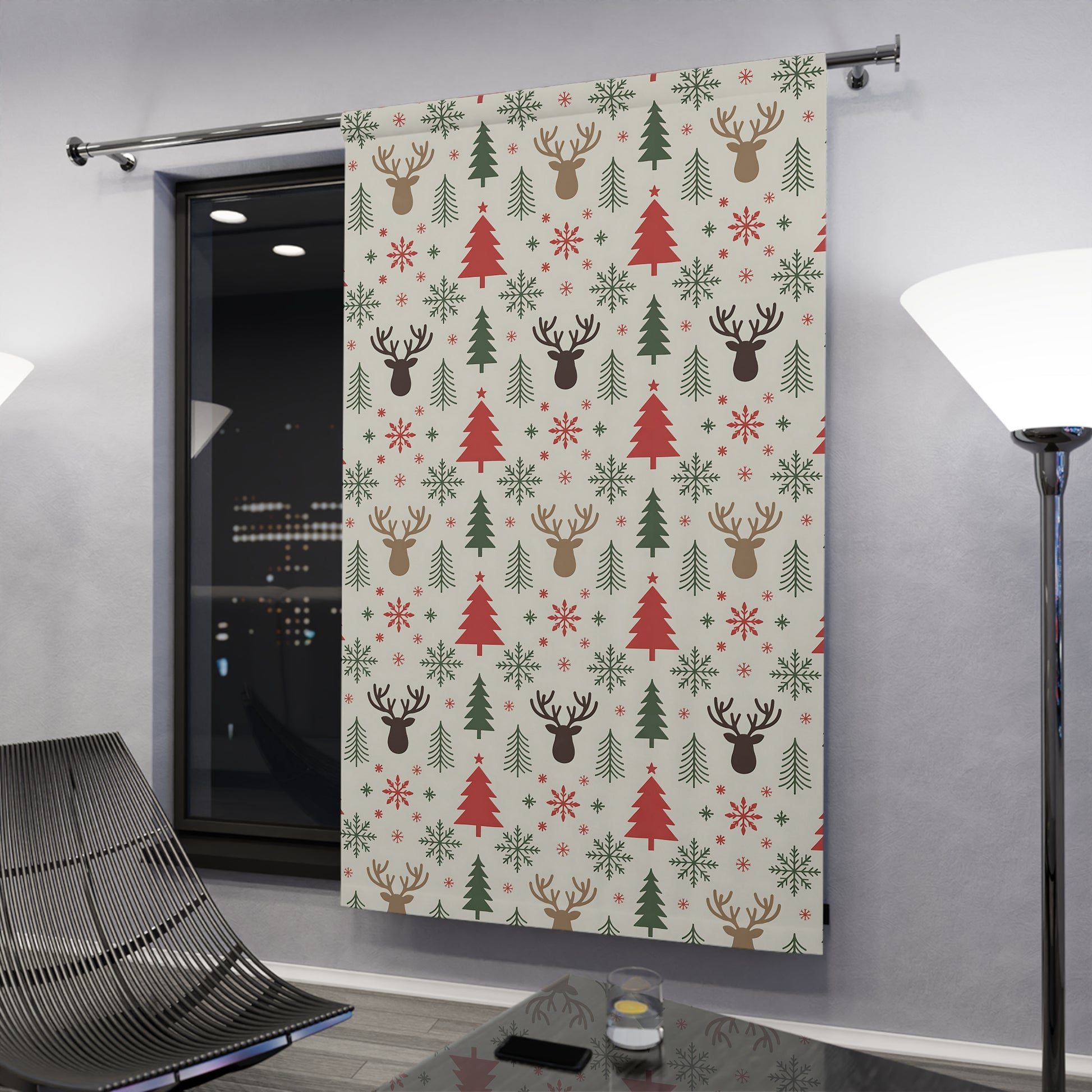 Bring the cozy holiday spirit into your home with these Christmas Reindeer & Trees Window Curtains. The festive pine tree pattern adds a touch of warmth and joy, perfect for the holiday season. These blackout curtains are great for a good night's sleep and blocking out unwanted light, making them ideal for bedrooms and living rooms. They are made of durable 100% polyester fabric with vibrant colors that will brighten up your space.